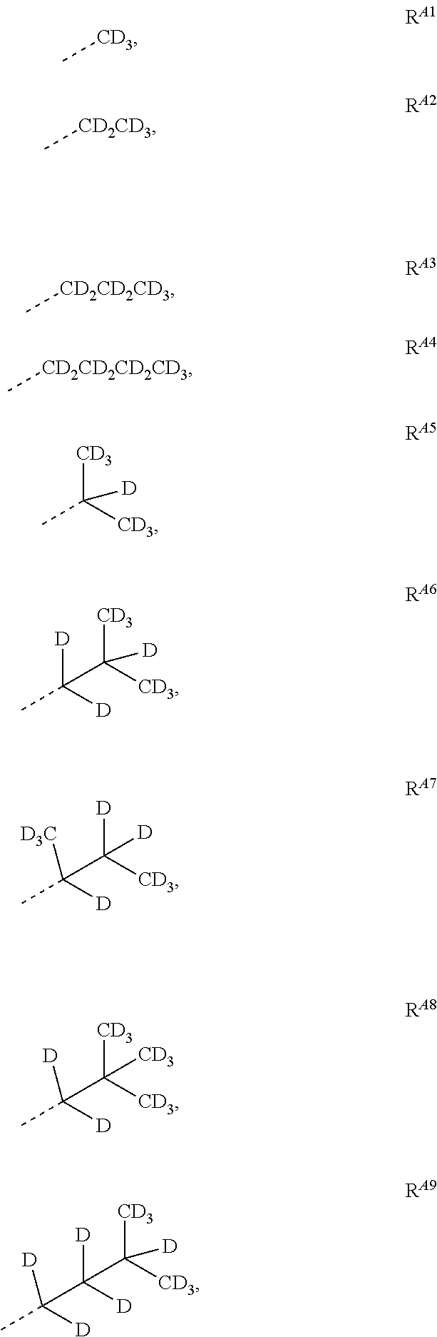 - wherein each of the at least one R is independently selected from the group consisting of partially deuterated alkyl, partially deuterated cycloalkyl, fully deuterated alkyl, fully deuterated cycloalkyl and combinations thereof;
