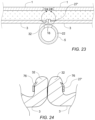 FIG. 23 shows a lock ring embodiment in a relaxed self-constrained state disposed about and securing portions of gathered fascia tissue layer.