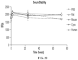 FIG. 20 shows the serum stability of the linker used for linking anti-TfR Fab 3M12 VH4/Vk3 to a control antisense oligonucleotide over 72 hours incubation in PBS or in rat, mouse, cynomolgus monkey or human serum.