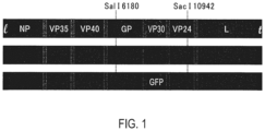 - a heterologous glycoprotein e.g., a Zaire genome expresses a Marburg virus, Sudan ebolavirus, or Bundibugyo ebolavirus glycoprotein, e.g., inserted into sequences corresponding to Ebola virus VP30 (ORF5) or the resulting deletion of ORF5 or a portion thereof, e.g., two different glycoproteins are expressed.