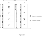 FIG. 18 is a time and spectrum diagram of an example in TDD where the gNB and UE may operate on the sub-bands that are available for at both gNB and UE sides.