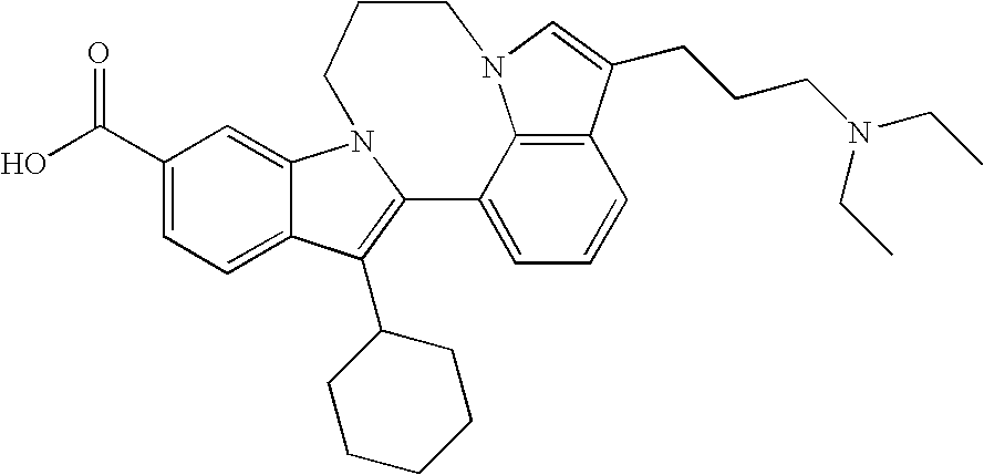 - (b) —C(X4)NR18R19, wherein X4 is ═O, ═NH, or ═N-alkyl, R18 and R19 are independently selected from the group consisting of hydrogen, alkyl, substituted alkyl, alkenyl, substituted alkenyl, alkynyl, substituted alkynyl, aryl, substituted aryl, heteroaryl, substituted heteroaryl, heterocyclic and substituted heterocyclic or, alternatively, R18 and R19 together with the nitrogen atom pendent thereto, form a heterocyclic, a substituted heterocyclic, a heteroaryl or a substituted heteroaryl ring group;