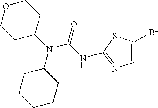 Cyclohex-3-enyl-cyclohexylamine was prepared by reductive amination of cyclohex-3-enylamine and cyclohexanone using general procedure (B). Reaction with carbonyl diimidazole and 2-aminothiazole using general procedure (A) gave the title compound.