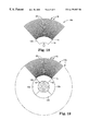 FIG. 19 is an end view of a plurality of brush segments of FIG. 18 assembled together on a shaft;