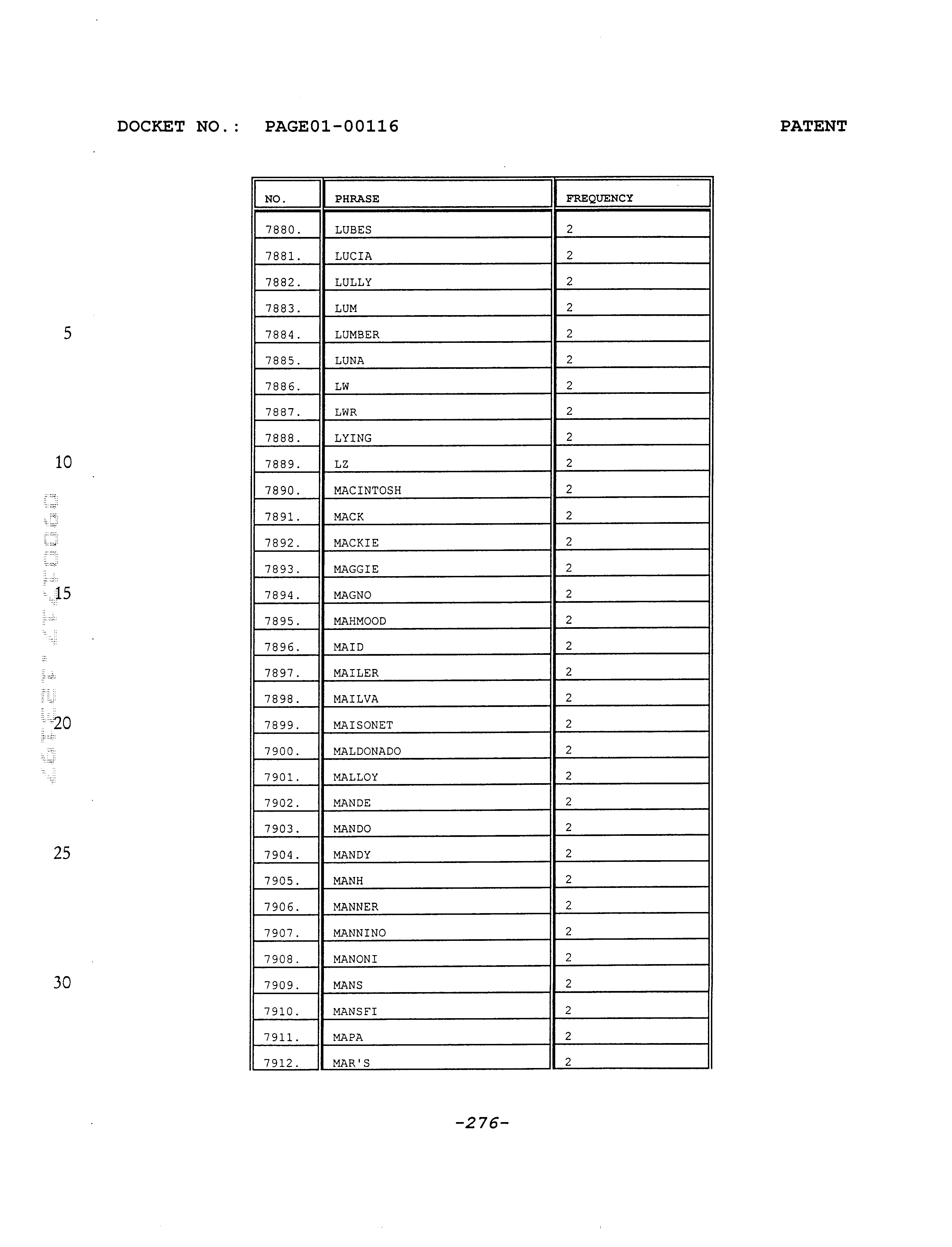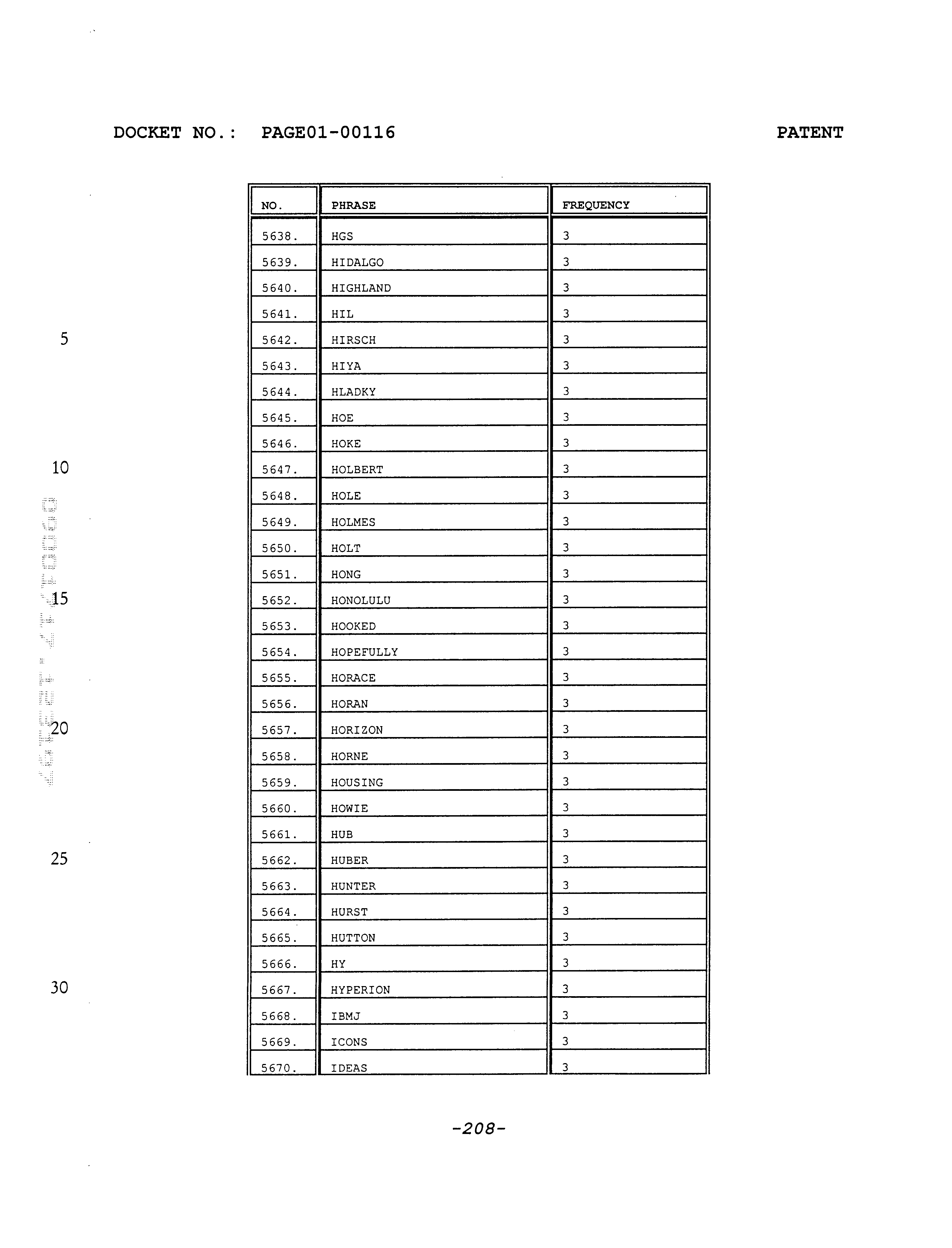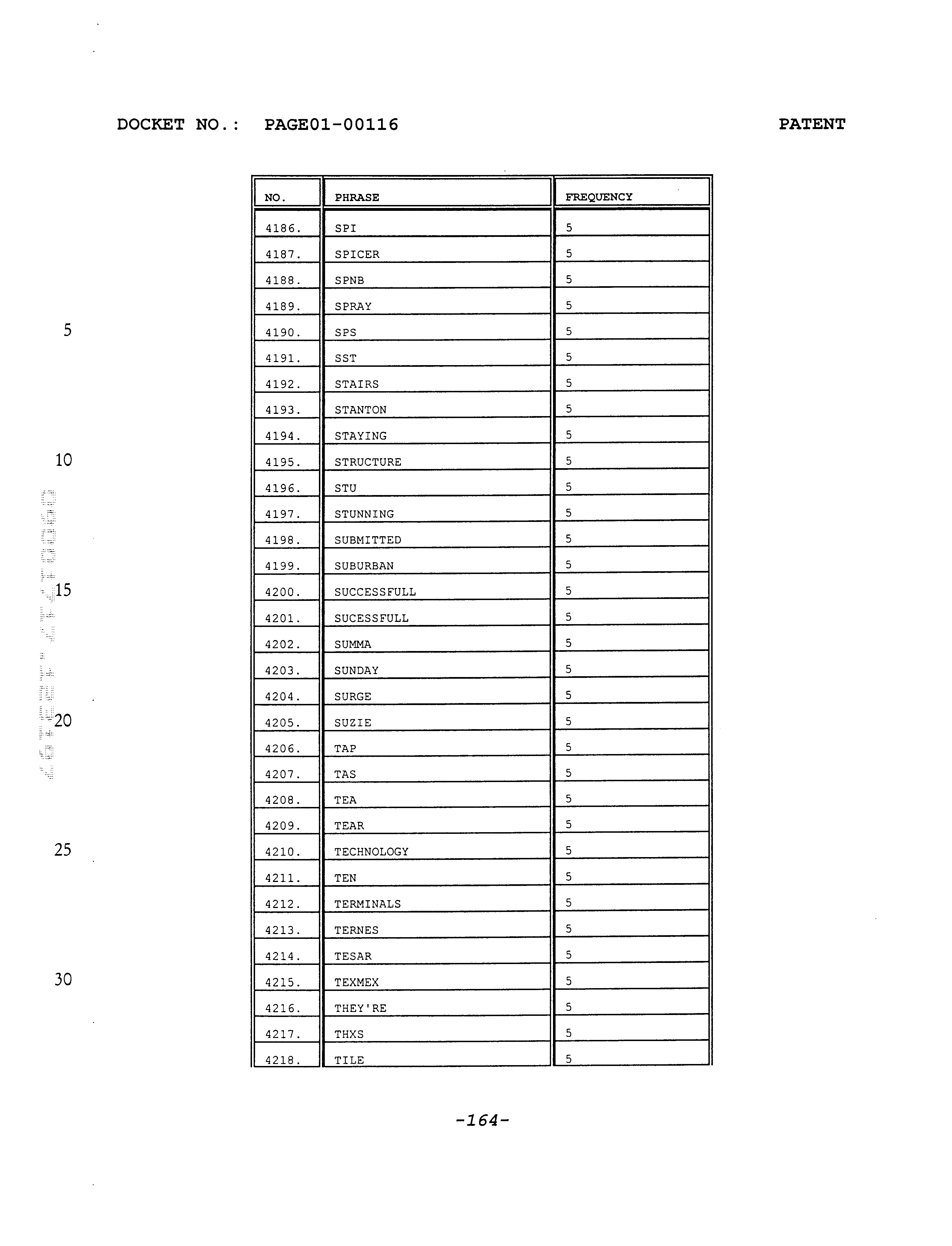 - Attached APPENDIX A which is discussed in detail hereafter, includes a partial list of acronyms, words, names, terms, tags and the like (collectively, hereafter referred to as “phrases”) commonly used by callers into the assignee's message paging system; in short, this list represents a “snapshot” of phrases common to the assignee's system.