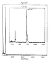 Each wash includes pipetting 1 μl of wash solution in and out of the spot of adsorbent three times. This process is repeated with a fresh aliquot of wash solution. Thereafter, the spot of adsorbent is washed with 1 μl of water two times. An aliquot of 0.3 μl of sinapinic acid (5 mg/ml 50% acetonitrile:0.5%TFA) is added and allowed to air dry. The array is analyzed with a laser desorptionlionization time-of-flight mass spectrometer from Hewlett Packard (Model 2030) that uses a nitrogen laser (355 nm) and a 150 cm flight tube. The data is analyzed by HP MALDI TOF software and exported to GRAMS/32c for data overlay presentation.