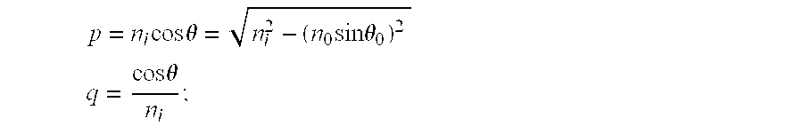 p=n i cosΦi ={square root over (ni 2+L −(n0 +L sinθ0+L )2+L )} (21)