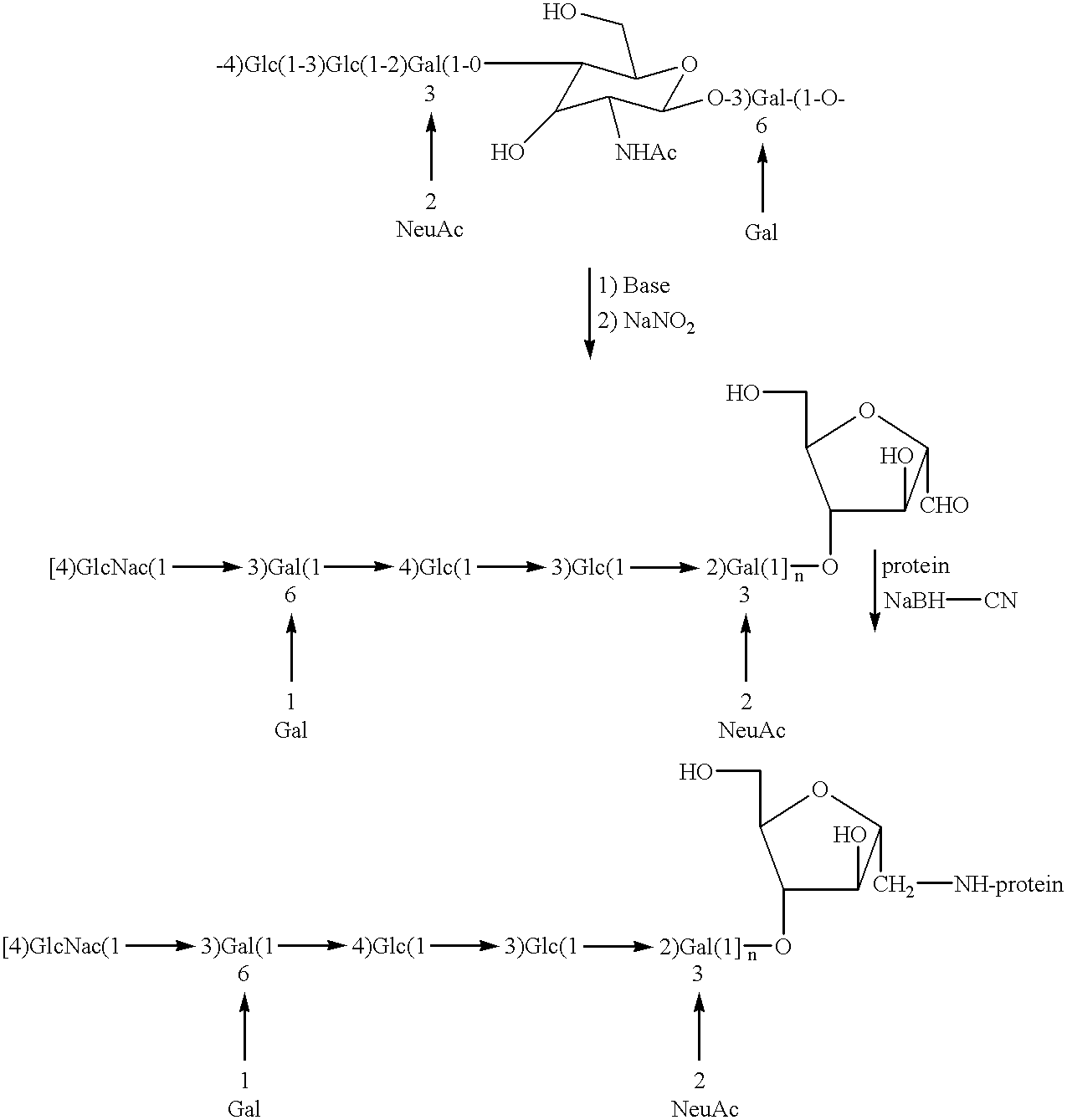 Type III GBS capsular polysaccharides are composed of a backbone of repeating branched pentasaccharide units. Jennings et al., Canadian J. Biochem., 58:112-120 (1980). One study of type III GBS polysaccharides reports that the natural immunodeterminant site is located at the side chain-backbone junction. Jennings et al., Biochemistry, 20:4511-4518 (1980). The presence of the side chain terminal N-acetyl-neuraminic acid residues reportedly was critical for immunodeterminant expression.