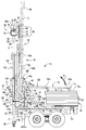 A drill head assembly 60 is operably coupled to mast 42 to provide for vertical displacement generally along longitudinal axis L1 and horizontal displacement generally perpendicular to longitudinal axis L1. Drill head assembly 60 includes a first mounting plate 62 which is operably coupled to mast 42 to allow drill head assembly 60 to translate up and down along mast 42. In one embodiment, the first mounting plate 62 is driven up and down along longitudinal axis L1 by way of a two-stage hydraulic cylinder. In such embodiment, the first mounting plate 62 is capable of being vertically displaced a distance of 26′ along longitudinal axis L1. It should be understood that first mounting plate 62 could alternatively be vertically displaced by utilizing other hydraulically actuated drive systems, such as, for example, a rack and pinion system or a chain and sprocket system, the details of which would be known to one of ordinary skill in the art. Another possibility would be an internal gear track feed system, including a gear track driven by one or more hydraulic cylinders. Further details regarding an internal gear track feed system are disclosed in U.S. Pat. No. 5,697,457 to Back, the contents of which are hereby incorporated by reference.