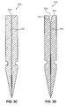 FIG. 3B is a sectional side view of bonding tool 300. As shown in FIG. 3B, an axial passage 320 extends from the end 322 to the tip 310 of bonding tool 300. In the exemplary embodiment, axial passage 320 has a substantially continuous tapered shape having a predetermined angle 326 of about 14°. The invention is not so limited, however, and it is contemplated that the axial passage 320 may be have a substantially constant diameter or tapered over only a portion of the length of bonding tool 200. The latter may be desired in order to facilitate wire insertion at the upper end 322 of bonding tool 300. Examples of such alternate axial passages are illustrated in FIGS. 3C and 3D. As shown in FIG. 3C, axial passage 320 has a substantially constant diameter 330 along the length of bonding tool 300. In FIG. 3D, bore 320 has a substantially constant diameter 340 along a portion of the length of bonding tool 300, and has a taper 342 adjacent the end 322 of bonding tool 300.