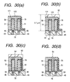 - each of said plurality of pillar-shaped lower electrodes has a main portion which occupies the maximum volume of the pillar-shaped lower electrode and an upper end portion which is disposed to cover the upper surface of the main portion and is made of a material different from that of the main portion, the upper end portion of said lower electrode having, at both ends of the head portion of the upper end portion, a beveled shape larger than the cross-sectional shape of said main portion at both ends of the head portion of the main portion.
