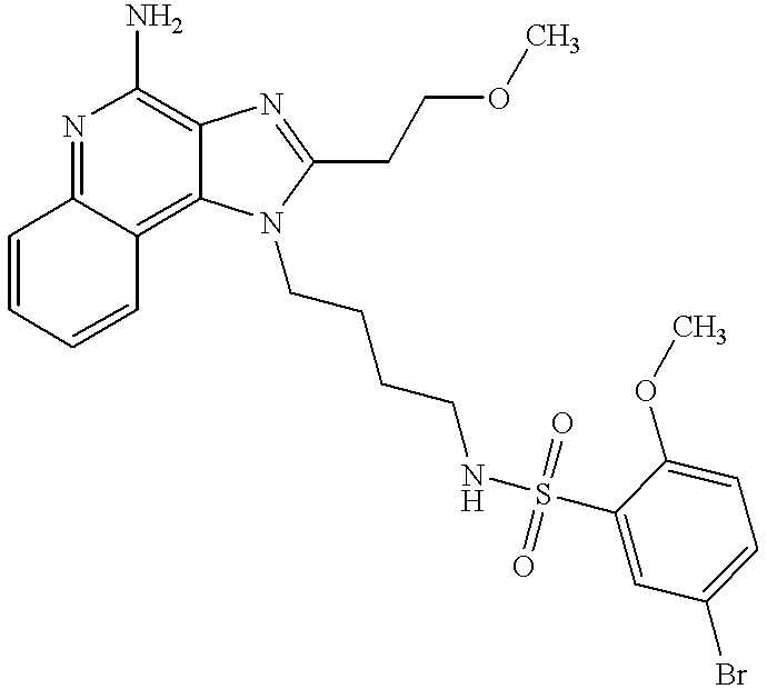 - KKEWQTHAOJTFED-UHFFFAOYSA-N n-[4-[4-amino-2-(2-methoxyethyl)imidazo[4,5-c]quinolin-1-yl]butyl]benzenesulfonamide Chemical compound COCCC1=NC2=C(N)N=C3C=CC=CC3=C2N1CCCCNS(=O)(=O)C1=CC=CC=C1 KKEWQTHAOJTFED-UHFFFAOYSA-N 0.000 claims description 2