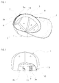 - the sweatband 3 is made of a woven or non-woven fabric and is attached to the lower inside periphery of the crown 1 to absorb the perspiration of the wearer.