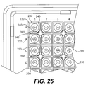- FIG. 8 is a close-up section view of the purification tray and sample well tray in an assembled state along line VIII—VIII of FIG. 16, with the section view passing through a notch in an aerosol guard and through an aerosol discharge aperture of the sample well tray;