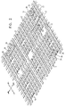 - the first metal layer includes a plurality of generally parallel bands extending parallel to a first axis, each band comprising a multiplicity of long strips extending parallel to the first axis, the long strips including at least one of straight strips and stepped strips, and at least one electrical connection between at least one strip in the first metal layer to the third metal layer, which overlies the first metal layer.