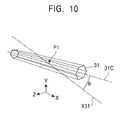 In FIG. 9, the center line XC indicates the center of the X-axis direction in a three-dimensional virtual space, and centers P1 through P3 of the rolls 31 through 33, respectively, are displaced from the center line XC slightly in the rightward direction, while centers P4 through P6 of the rolls 34 through 36, respectively, are located on the center line XC.
