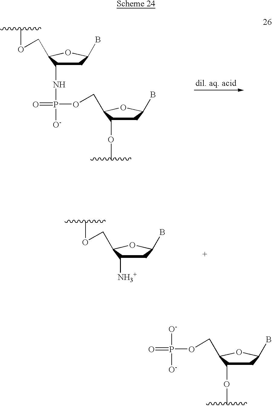 In another aspect of this invention, incorporating the detectable label during cleavage comprises using a detectably labeled secondary amine.
