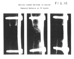 There were no implant failures or other complications with this study. The radiographs were evaluated for healing of the gap and graded according to previously published ordinal scale ranging from 0-4 (Table 6). By 12 weeks, a substantial amount of mineralized tissue was present in the defect area in all three animals (FIG. 10) and by 16 weeks there was a continuous bridge of mineralized tissue spanning the entire defect (FIG. 11). The histologic data confirmed the radiographic conclusions and in all cases the defect was found to have healed by the 16 weeks time point. This was in contrast to defects that had been left empty, which were subsequently found to have only a minimal amount of bone in the defect, and this bone was limited to the regions at the cut edges of the defect. See Johnson et al., J. Orthop. res., 14:351-369, 1996.