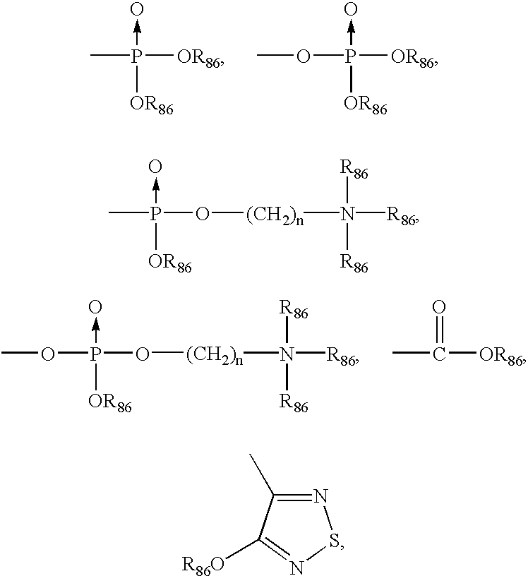 Alkylation of the hydroxy group to prepare the desired alkyl-linked ester (19) occurs by treatment of (18) with an appropriate alkylating agent, such as (X)(CH2)nB where B is CO2PG, —PO3PG or —SO3PG, X is halo and PG is an acid protecting group, preferably methyl.