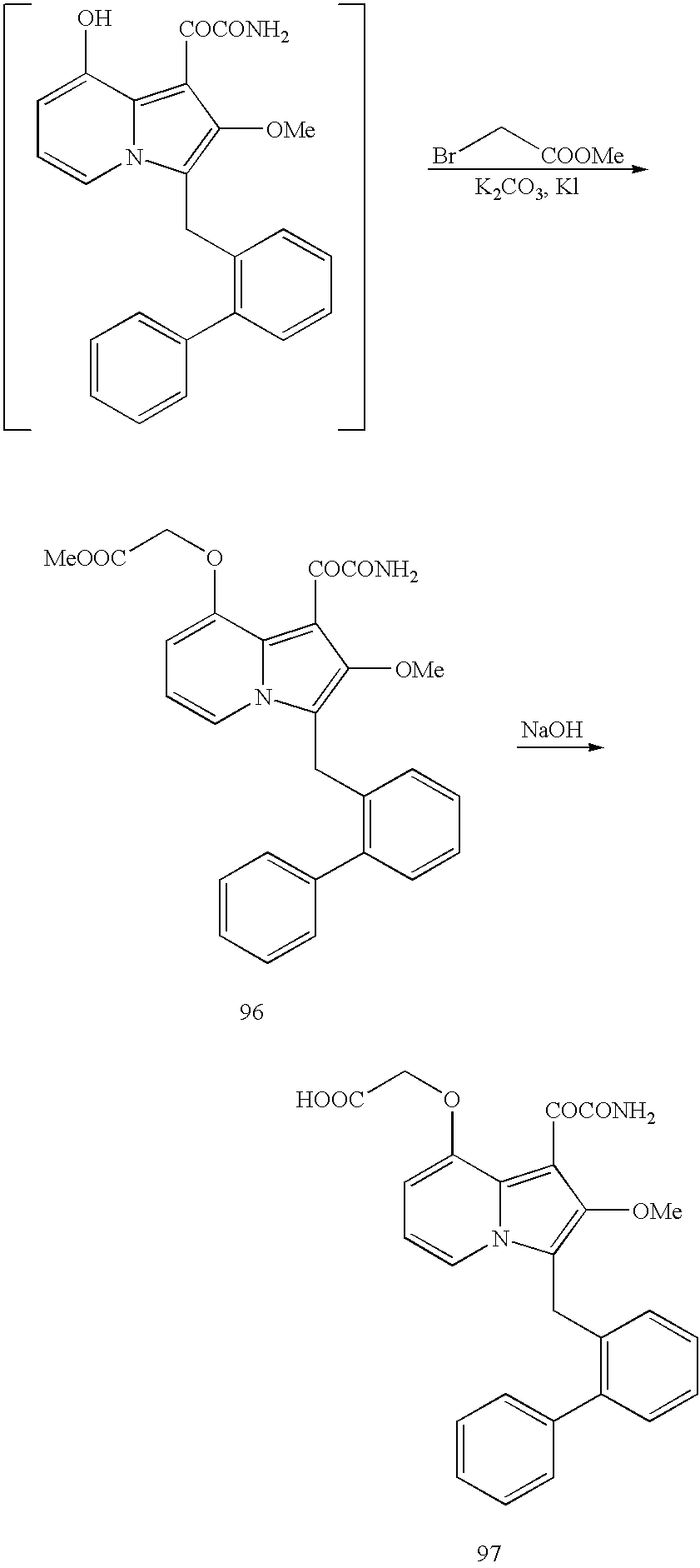 m) Naphthyl acetamide sPLA2 inhibitors and the method of making them are described in U.S. patent application Ser. No. 09/091,077, filed Dec. 9, 1996 (titled, “Benzyl naphthalene sPLA2 Inhibitors”), the entire disclosure of which is incorporated herein by reference.