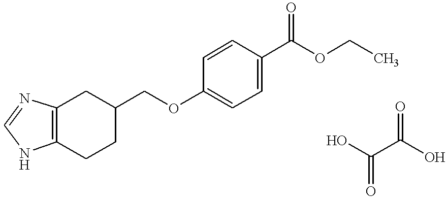 - XUMSOYGUGYIGON-UHFFFAOYSA-N CCOC(=O)C1=CC=C(OCC2CCC3=C(C2)N=CN3)C=C1.O=C(O)C(=O)O Chemical compound CCOC(=O)C1=CC=C(OCC2CCC3=C(C2)N=CN3)C=C1.O=C(O)C(=O)O XUMSOYGUGYIGON-UHFFFAOYSA-N 0.000 description 1