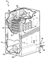 - the enclosure 10 includes upper and lower blowers 12 a and 12 b , a cooled-air supply plenum 14 , a warmed-air return plenum 16 , upper and lower intercoolers 18 a and 18 b , and mounting rails 20 mounted to the inside of the enclosure 10 preferably to the supply and return plenums 14 and 16 .