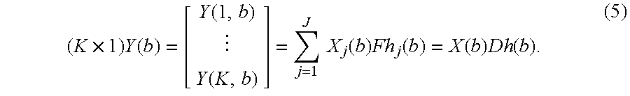 j(k,b) is mathematically modeled as the N-point DFT (N≧K) of a length L sequence, h
