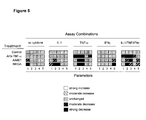 - Biomap relationships are visualized by a tree diagram in which a) each terminal branch point represents the biomap prepared from the indicated assay combination; b) the length of the vertical distance from the upper horizontal line (no change and control patterns) to the termini are related to the extent of difference in the readout pattern from the reference pattern (IL-1+TNF- ⁇ +IFN- ⁇ ); and c) the distance along the branches from one terminal pattern value to another reflects the extent of difference between them.