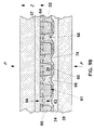 FIG. 12 is a cross-sectional view of a nip in a long shoe press wherein a moist paper web is transferred to a deflection member and molded thereon.
