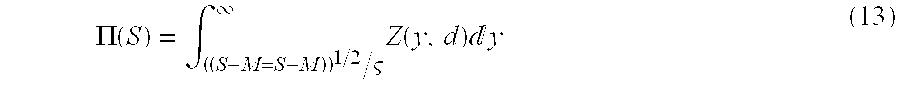Once d is known. the probability Π(S) of a signature being at the same distance as signature S or further from the average value within the reference signature population is estimated from equation (11) with the many dimension population distribution Z(y,d) replacing Z(y):