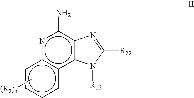 - Preferred immune response modifier compounds include 1H-imidazo[4,5-c]quinolin-4-amines defined by one of Formulas I-V below: