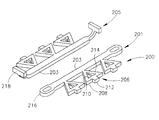 - a first one of said arms is less flexible than a second one of said arms, and wherein said second arm is adapted to have two stable states, one state in which the second arm is spaced from said first arm and one state in which said second arm is adjacent said first arm;