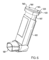 - FIG. 2 shows a standard metered dose dispenser (essentially identical to that shown in FIG. 1) incorporating an actuation-indicator in accord with the present invention.