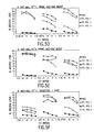 FIGS. 4A-H show anti-HIV gag cytotoxic T lymphocyte responses in rhesus monkeys vaccinated with FG Ad5FLgag. FIGS. 4A, B, and C are the first group of monkeys, D, E, and F are the second, and G, H, and I are the third group. Each represents specific killing responses of each monkey receiving the indicated treatment. The abscissa axis shows the effector/target (E/T) ratios of cultured T cells and B cells employed in this assay, while the ordinate axis shows specific lysis values obtained for each sample. Specific lysis values of at least 10% difference between curves±gag peptide antigen are generally considered significant. The square symbols represent target cells treated with DMSO alone at the same concentration as samples containing peptides while the circles, triangles, and diamonds represent target cells treated with partial (F, G) or complete (H) gag peptide pools, respectively.