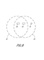 FIG. 8 is a depiction of two locator units communicating to locate a transceiver.