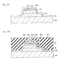 Referring to FIG. 8A, a mask 54 covers the emitter contact layer 51 and the emitter film 48. The mask 54 demarcates the region where the second mesa is formed.