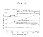 FIG. 4 is a graph of the shear strength versus the stage temperature of bumps formed in accordance with the method of the embodiment and the conventional method;