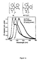 FIG. 11 is a plot showing the emission spectra of (ppy)AuCl2 and (ppy)Au(2,2′biphenylene). Both emit from ligand triplet π-π * transitions.