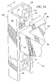 • FIG. 14 is an enlarged fragmentary perspective view of another shelf adapter bracket, and illustrates a first shelf bracket member having opposing channels or slideways and vertically spaced slots and a second shelf bracket member locked thereto and supporting a shelf.