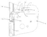 - FIG. 22 is a side view of the hinge of FIG. 22 , with the slide in a retracted position.