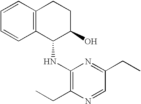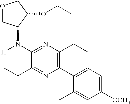- BMKFDWZIDZWECZ-JTHBVZDNSA-N CCO[C@H]1CC2=CC=CC=C2[C@H]1NC1=C(C)N=C(C2=C(Cl)C=C(Cl)C=C2)C(C2CC2)=N1 Chemical compound CCO[C@H]1CC2=CC=CC=C2[C@H]1NC1=C(C)N=C(C2=C(Cl)C=C(Cl)C=C2)C(C2CC2)=N1 BMKFDWZIDZWECZ-JTHBVZDNSA-N 0.000 description 4