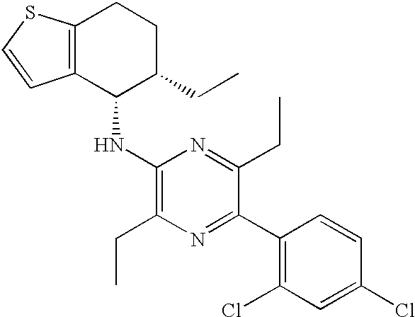 - OIUHFKPWQMHEJS-ZSEKCTLFSA-N CCC1=NC(N[C@@H]2C3=C(CC[C@@H]2C)SC=C3)=C(CC)N=C1C1=C(Cl)C=C(Cl)C=C1 Chemical compound CCC1=NC(N[C@@H]2C3=C(CC[C@@H]2C)SC=C3)=C(CC)N=C1C1=C(Cl)C=C(Cl)C=C1 OIUHFKPWQMHEJS-ZSEKCTLFSA-N 0.000 description 3