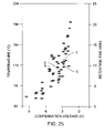 FIG. 24 shows the compensation voltage versus retention time for the 50 peaks of highest intensity in py-GC DMS analyses of E. coli (grey signals) and M. luteus (black signals) for positive polarity ions.
