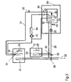 The third embodiment of the system of the present invention shown in FIG. 3 corresponds, with the exception of the difference explained below, to the embodiment shown in FIG. 2, for which reason reference is made to the corresponding description. The third embodiment of the system of the present invention as shown in FIG. 3 thus differs from the second embodiment as shown in FIG. 2 in that the valve means in addition to the 3/2 valves 54 and 56 comprises another 3/2 valve 58. The other 3/2 valve 58 in particular makes it possible to connect only the first heating heat exchanger 22 or only the first heat exchanger 20, or both the first heating heat exchanger 22 and also the first heat exchanger 20, to the heating circuit 52.