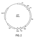 FIG. 1 is a schematic representation of pLW22 insertion plasmid, showing flanking regions FL1 and Fl2, lacZ gene and cloning sites PmeI and AscI. PSYN promoter drives expression of the gene inserted between PmeI and AscI.