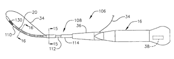 In order to facilitate formation and adjustment of the loop 95, outer member 94 includes a pull wire slot 100 and the distal ends of the outer members 92 and 94 respectively include outwardly flared portions 102 and 104. The pull wire slot 100 is wide enough to allow the pull wire 34 to slide into the outer member 94, yet too narrow to allow the shaft distal member 18 to slide out of the outer member once it has been pulled in. As such, loop 95 may be formed by advancing the shaft distal member 18 outwardly from the distal end of the outer member 92, pulling on the pull wire 34 to bend the distal member back in the proximal direction, sliding the pull wire into the pull wire slot 100, and pulling the distal member into the distal end of the outer member 94.