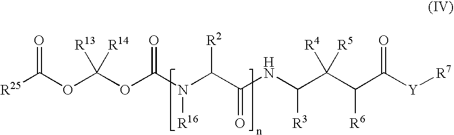 - C07K5/0205—Peptides containing up to four amino acids in a fully defined sequence; Derivatives thereof containing at least one abnormal peptide link containing the structure -NH-(X)3-C(=0)-, e.g. statine or derivatives thereof