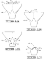 Similarly, sleeve 10 i in FIG. 18 comprises notch perforations 90 which allow the removal of a notch of material 92 in the vicinity of the downward-pointing apexes 88 in the detaching element 48, comprising lateral perforations, which demarcates the upper peripheral edge of the skirt portion 52 of the sleeve 10 i. After the upper portion 44 of the sleeve 10 i is detached, the notches 92 are removed, allowing the adjacent portions of the skirt portion 52 to be deflected at an increased angle to the base portion 50 as shown in FIG. 19.