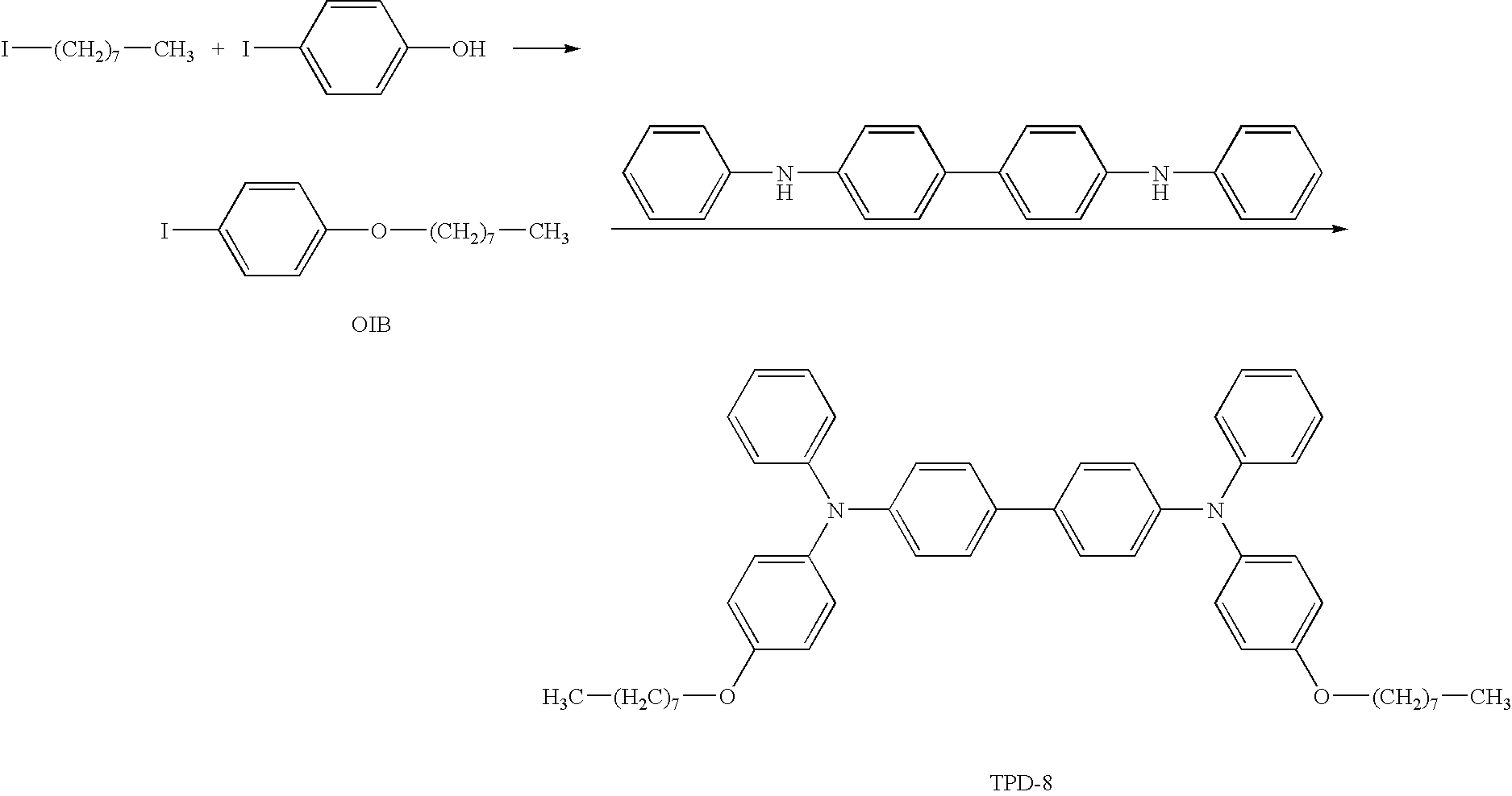 - VVCBIAKXODJZGX-HGUGXOTLSA-N BI=O.C1=CC=C(NC2=CC=C(C3=CC=C(NC4=CC=CC=C4)C=C3)C=C2)C=C1.CCCCCCCCI.CCCCCCCCOC1=CC=C(I)C=C1.CCCCCCCCOC1=CC=C(N(C2=CC=CC=C2)C2=CC=C(C3=CC=C(N(C4=CC=CC=C4)C4=CC=C(OCCCCCCCC)C=C4)C=C3)C=C2)C=C1.OC1=CC=C(I)C=C1.[2H-8]P[3H] Chemical compound BI=O.C1=CC=C(NC2=CC=C(C3=CC=C(NC4=CC=CC=C4)C=C3)C=C2)C=C1.CCCCCCCCI.CCCCCCCCOC1=CC=C(I)C=C1.CCCCCCCCOC1=CC=C(N(C2=CC=CC=C2)C2=CC=C(C3=CC=C(N(C4=CC=CC=C4)C4=CC=C(OCCCCCCCC)C=C4)C=C3)C=C2)C=C1.OC1=CC=C(I)C=C1.[2H-8]P[3H] VVCBIAKXODJZGX-HGUGXOTLSA-N 0.000 description 1