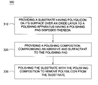 - a polishing composition is provided to the polishing media to effect chemical activity in removing material from the substrate surface.